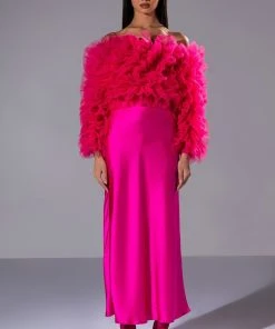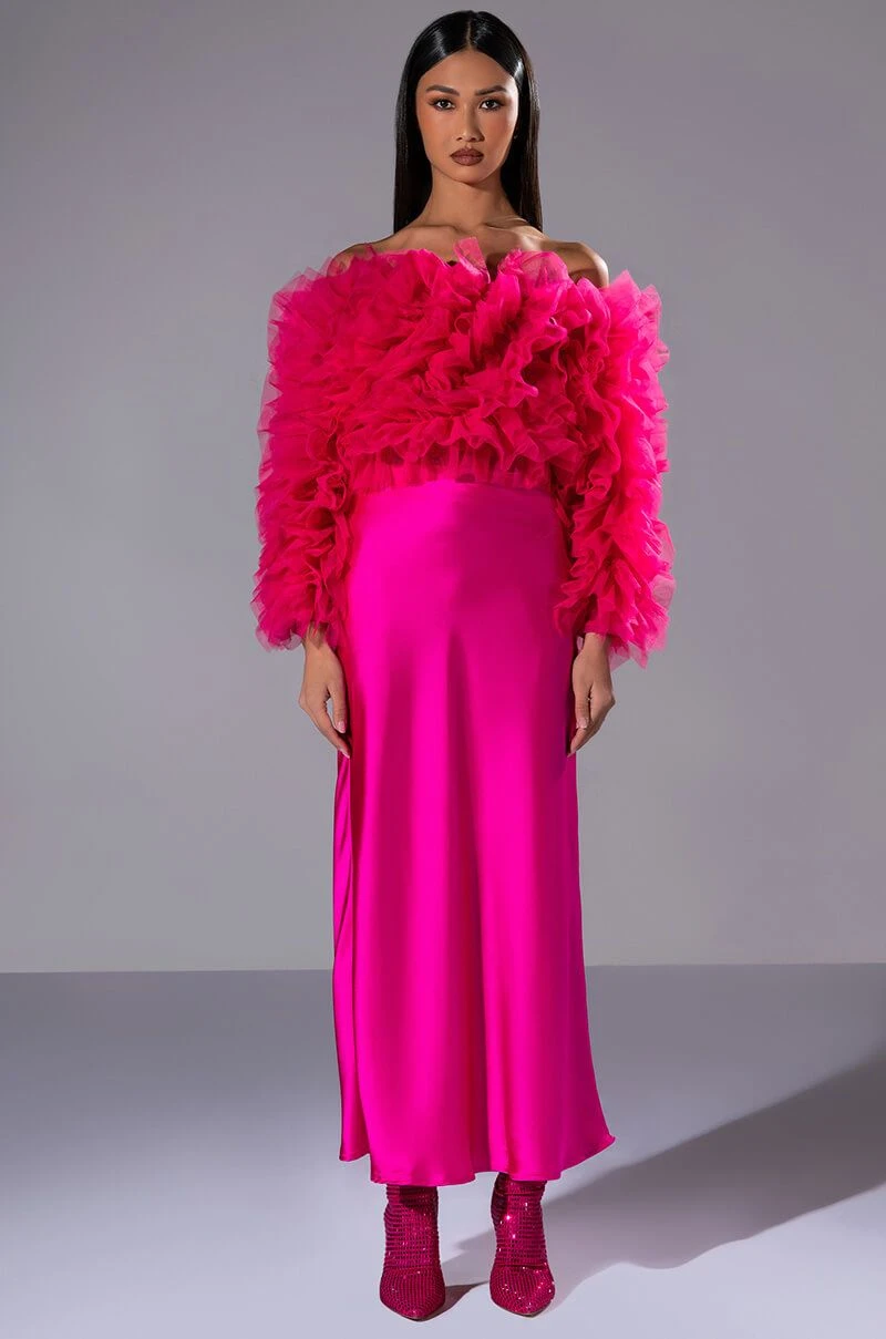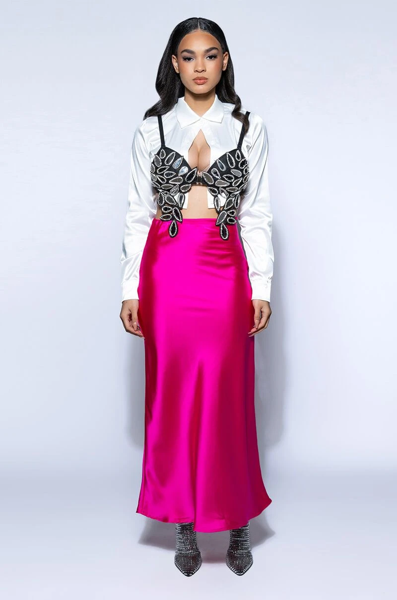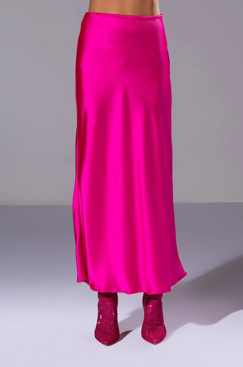 Want to add a stunning pop of color to your wardrobe? The Akira Label Beautiful Heart Satin Maxi Skirt is a must-have for your skirt rotation. It features a maxi length silhouette and a glamorous satin base, complete with a concealed side zipper closure. The possibilities are endless with this piece – dress it up with heels and a turtleneck, or throw on sneakers and a cropped tee for an everyday fit!