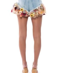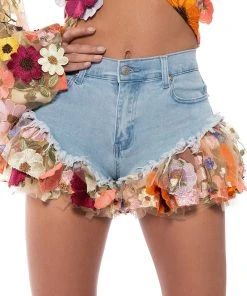 BOTANICAL BEAUTY RUFFLE DENIM SHORTS