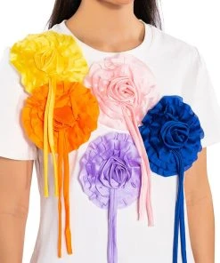 Spring has sprung with The AKIRA Label Bouquet Of Flowers Fabric Detail Shirt! This soft and stretchy top is made from a cotton blend base fabrication and features a crew neckline, boxy short sleeves, an oversized fit, and 3D flower detailing with colorful satiny petals and stems. Style with a bold headband, straight leg denim, and chunky loafers.