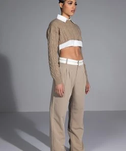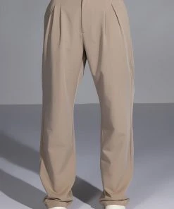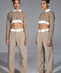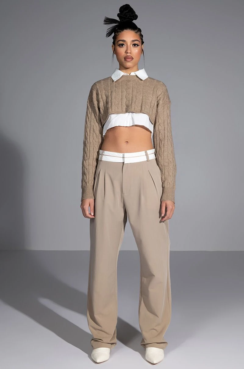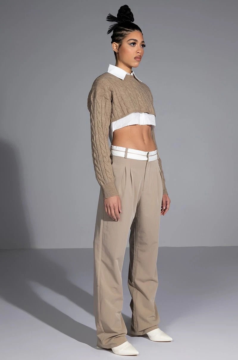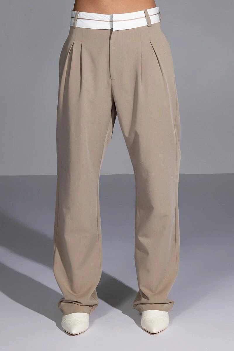 The AKIRA Label Certified Boss Wide Leg Trouser features a smooth, lightweight fabrication, a high rise waist, a wide fold over-inspired waistband, working belt loops, on seam slant side pockets, pleat front detailing, jetted back pockets, and a wide leg silhouette. Complete with a hook and eye clasp and zipper front closure. Pair this suited-up piece with a mock neck top and pumps to complete your tailored look.