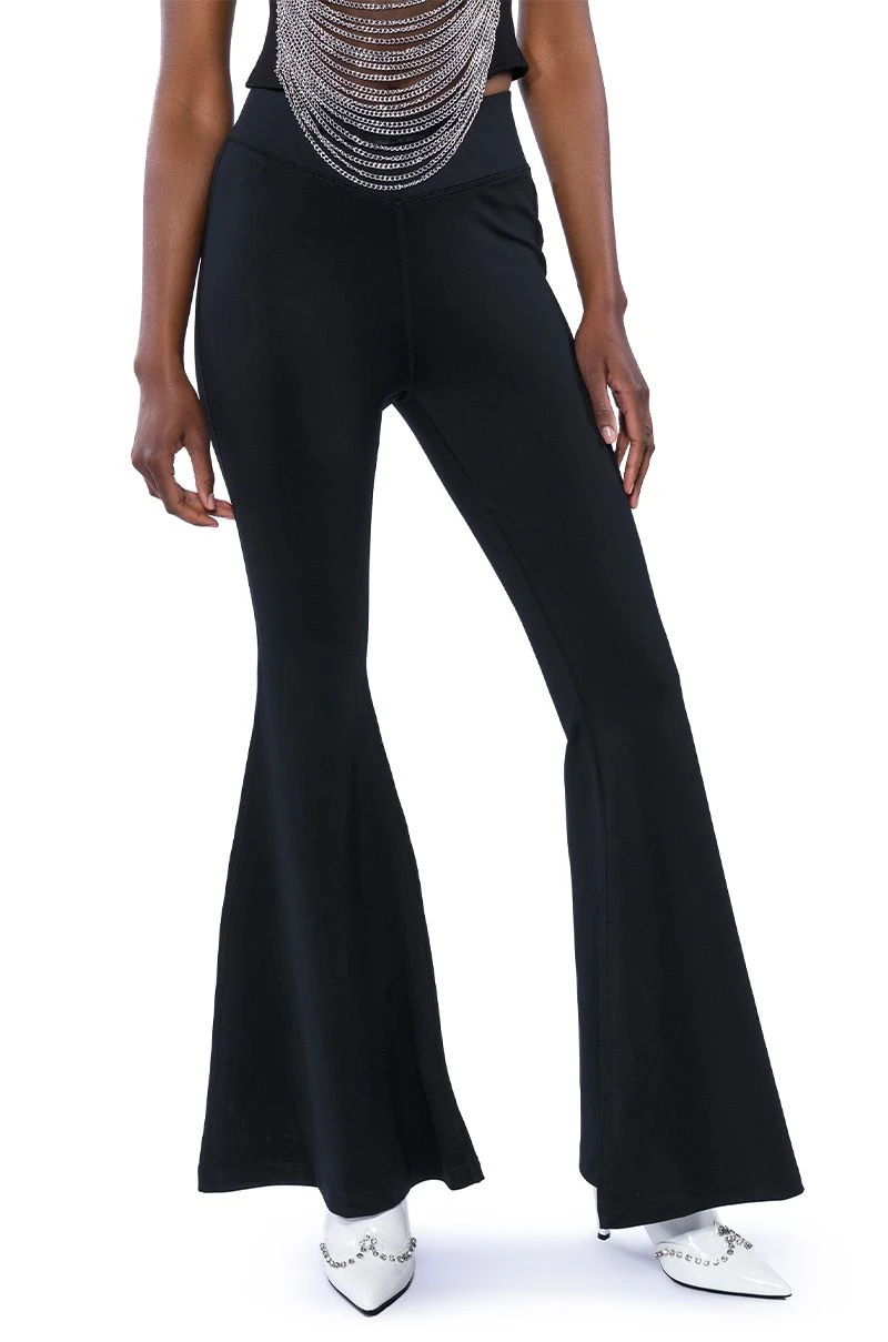 Stay cool, calm, and collected in The AKIRA Label Cool And Casual Flare Legging! These form-fitting bottoms are made from a sleek, stretchy base fabrication and feature a V-shaped, wide elastic waistband, a bodycon fit, and flared bottom hems. Complete with a pull-on fit. Style with a baby tee and chunky sneakers for an off-duty look.