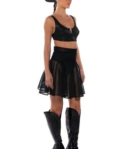 The AKIRA Label Hate The Player Pleated Mesh Mini Skirt is made from an unlined honeycomb mesh fabrication and features a high rise waist, a wide waistband, pleated stitching, a mini length silhouette, and a tonal side zipper closure.