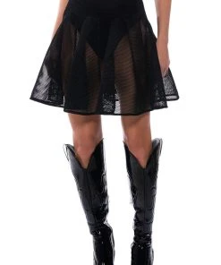The AKIRA Label Hate The Player Pleated Mesh Mini Skirt is made from an unlined honeycomb mesh fabrication and features a high rise waist, a wide waistband, pleated stitching, a mini length silhouette, and a tonal side zipper closure.