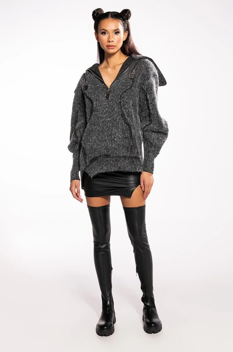Have fun without us, we’ll be dancing on our own in The AKIRA Label Everybody But Me Vegan Leather Mini Skirt With 4 Way Stretch. This faux leather beauty features an ultra-stretchy bodycon fit, nipped in waist, notch front design, and concealed back zipper closure. Pair with a vibrant sweater and coordinating mini bag for a look that says you’re cool flying solo.