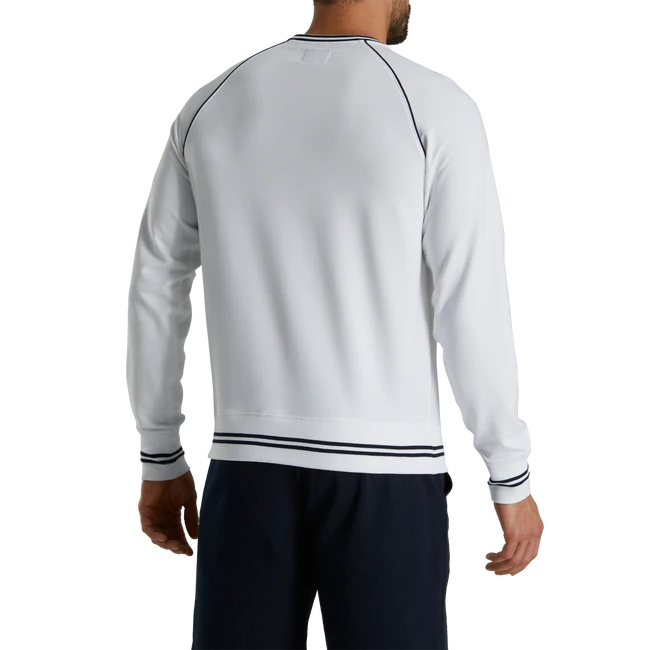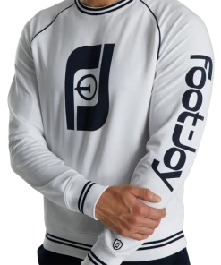 Provides comfort and warmth in a pullover design featuring a vintage golf and tee FJ logo.