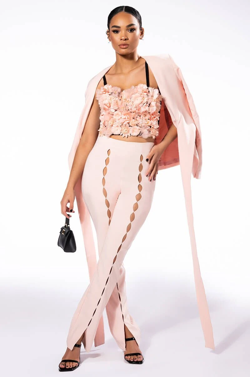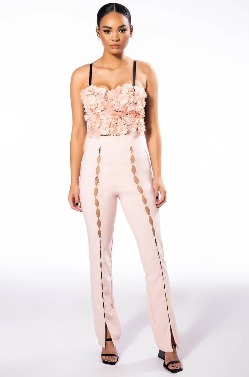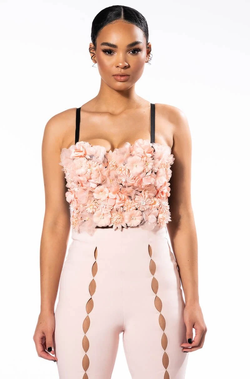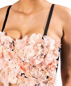Like a bouquet for your wardrobe. The AKIRA Label Full Bloom Floral Crop Top features a sleek and stretchy fabrication, a boned bodice, padded push up bust cups, removable, adjustable tank straps, a sweetheart neckline and hook and eye back closures. Complete with three-dimensional floral applique detailing, a cropped cut, and elastic inner trim for a secure fit.