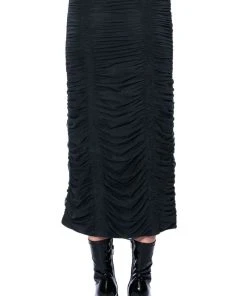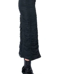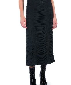 The AKIRA Label I Only Getter Better Ruched Maxi Skirt is made from a stretchy fabrication base and features a high rise waist, a toggle drawstring waistband, a ruched mesh outer layer, and a maxi length silhouette. Pair this piece with a crop tee and chunky combat boots to complete your trendy streetwear look.