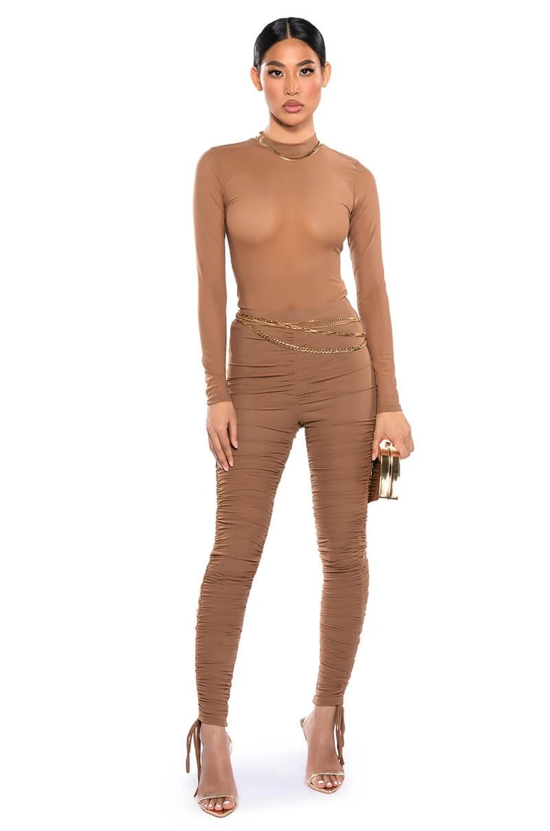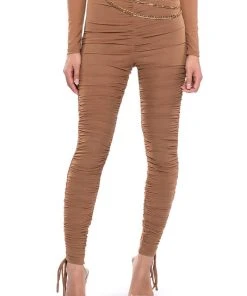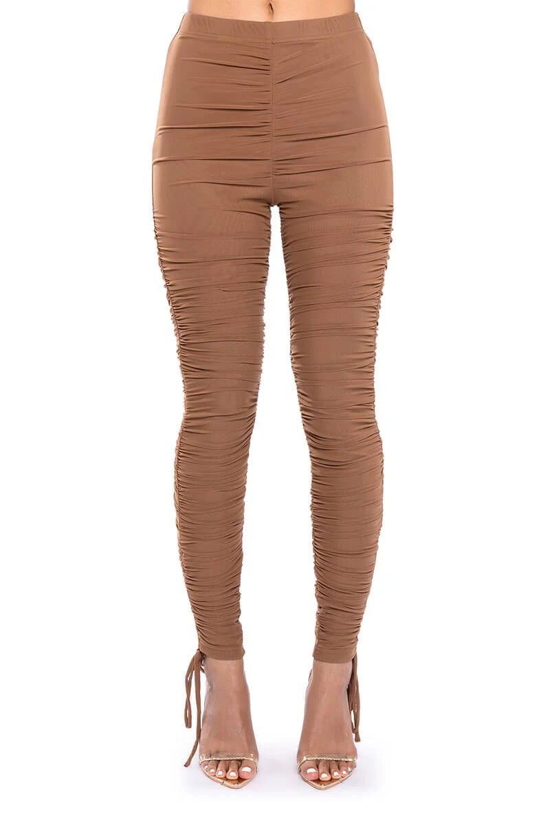 Bring your money up in The AKIRA Label I Win Again Stacked Leggings! These bottoms will enhance your boss babe mentality with its stretchy, mesh base fabrication, high waist, elastic waistband, and ruched legs. Complete with a bodycon fit, a sexy ruched back, smooth inner lining, and adjustable drawstring bottom hems. Style these bottoms with a cropped sweater and chunky boots for a chic, everyday look.