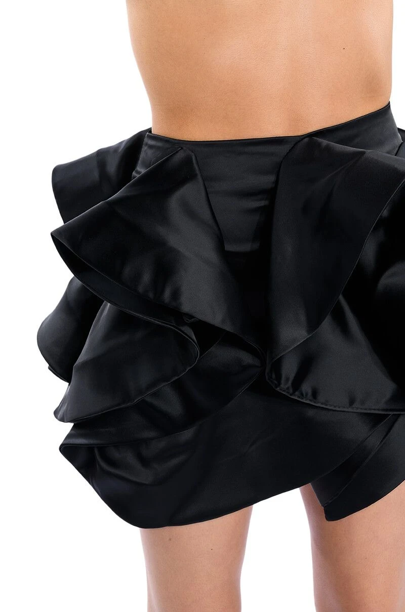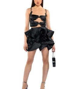 We’re giving L U X E with this number… The AKIRA Label Lux Waves Mini Skirt is a sleek mini, made from a structured, satin base fabrication and featuring a high waist, a 3-dimensional, wavy ruffle design, and a mini length. Complete with a tonal back zipper closure. Style with a mesh long sleeved bodysuit and The AZALEA WANG Lyrica Chunky Boot In Black PU, for an edgy, chic look!