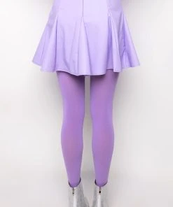 The AKIRA Label Rio Super Stretch Mini Skirt features a faux leather fabrication, a circle skirt silhouette, kick pleat detailing, a mini length, and a back zipper closure.