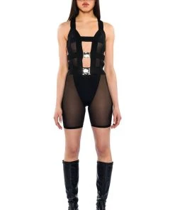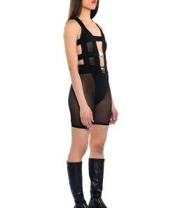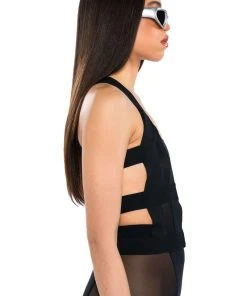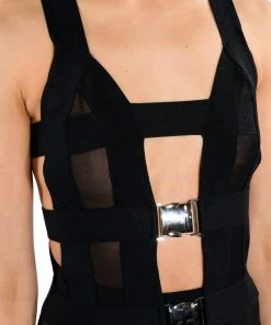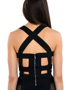 The AKIRA Label Sneaky Link Bandage Cutout Tank is an ultra-sexy cross back tank featuring a grid-like bandage knit strap base, mesh panel detailing, cut out window accents, dual front buckle closures, and an exposed back zipper. Dress it up with pleather pants and strappy sandals.