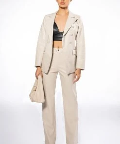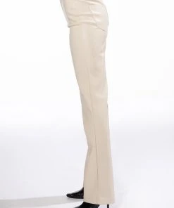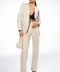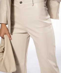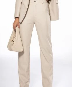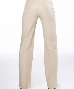 ¡Con mucho amor! The AKIRA Label Te Quiero High Rise Vegan Leather Straight Leg Pants In Ivory are a stretchy vegan leather pant featuring a soft fleece lining, belt loops, a high rise waistline, two back pockets, and wide leg silhouette. Complete with a front button and zipper closure.