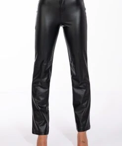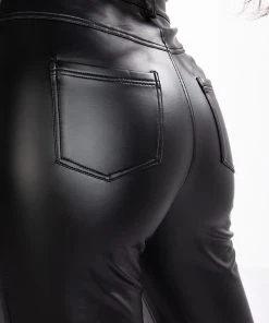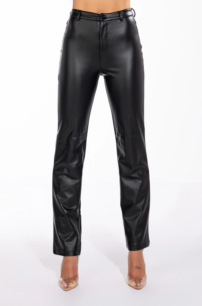 ¡Con mucho amor! The AKIRA Label Te-Quiero High Rise Vegan Leather Wide Leg Pant With 4 Way Stretch is made from a soft and stretchy vegan leather fabrication and is complete with a soft fleece lining, belt loops, a high rise waistline, two back pockets, and wide leg pants with a front button and zipper closure.