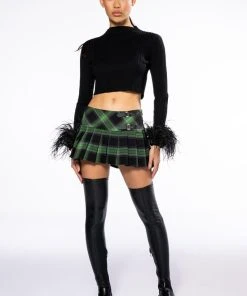 Cute yet sassy, The Akira Label The Flirt Pleated Micro Mini Skirt is made from a light plaid flannel fabrication and features a low rise waist with pleated detailing. The micro mini length design is completed with inner lining shorts, faux double buckles, and a hidden side zipper closure. Style this piece with thigh high boots to complete your look!